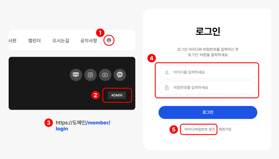 - 관리자 계정은 1개의 홈페이지에 대해 1개만 제공됩니다.