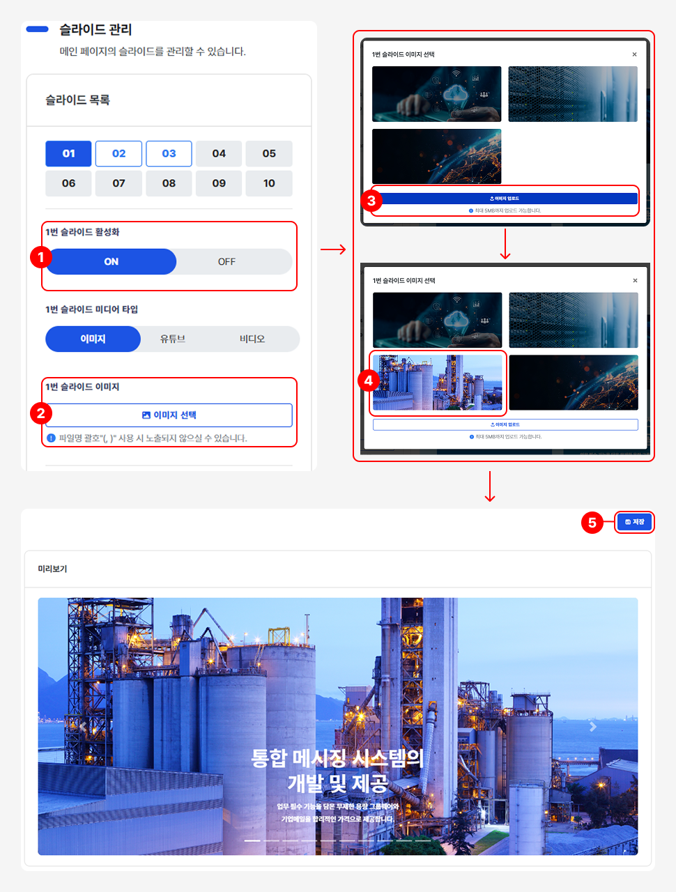 [슬라이드 목록 설정하기 (이미지, 동영상, 유튜브)]