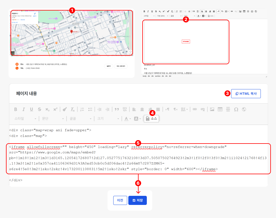 5. 변경을 진행할 구글맵(iframe) 위치를 확인합니다.