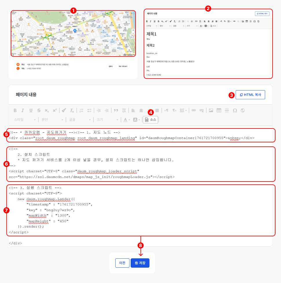 3. 텍스트 에디터 내 카카오맵을 교체합니다.