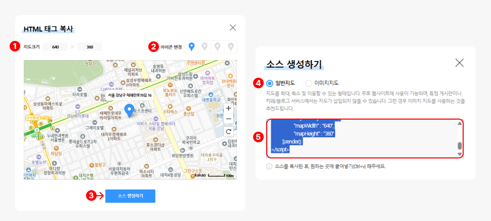 2. 카카오맵 HTML 태그 복사에서 소스를 복사합니다.