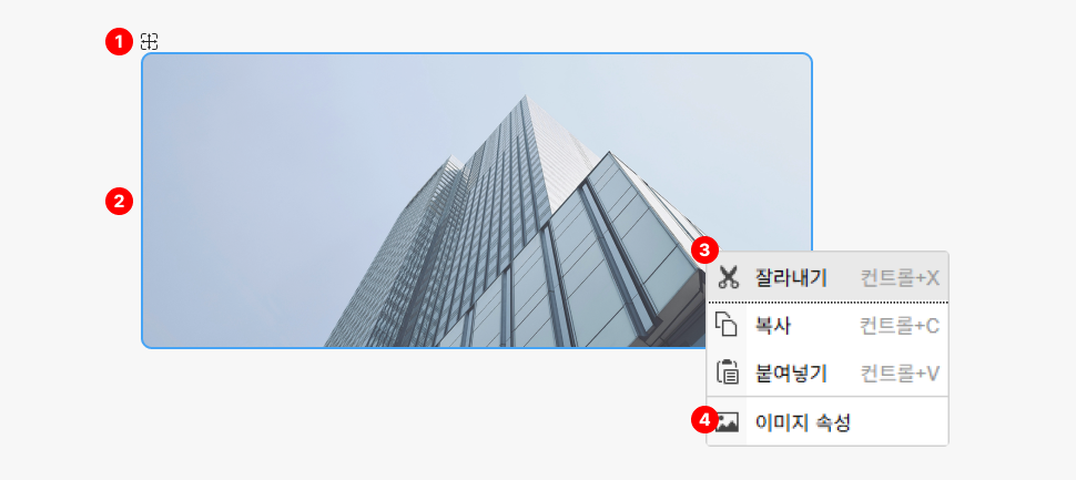 • [1회 클릭] 선택하여 이미지 스타일을 지정하거나, 위치를 변경할 수 있습니다.